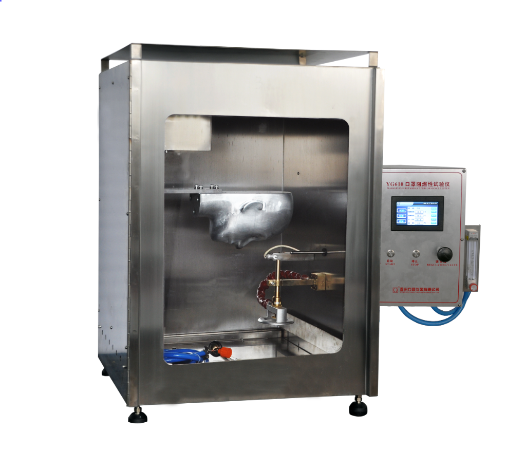在某些特殊的環(huán)境中使用口罩可能會(huì)遇到被點(diǎn)燃的危險(xiǎn),這種情況下,具有優(yōu)秀的阻燃性能的口罩能夠有效的保護(hù)使用者的生命安全,避免受到嚴(yán)重的損傷,因此,有款專業(yè)檢測(cè)口罩阻燃性能的設(shè)備是十分必要的。